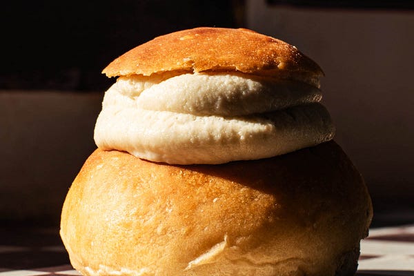 With a cashew coconut cream filling and soft cardamom bun. This is a subscriber only recipe.